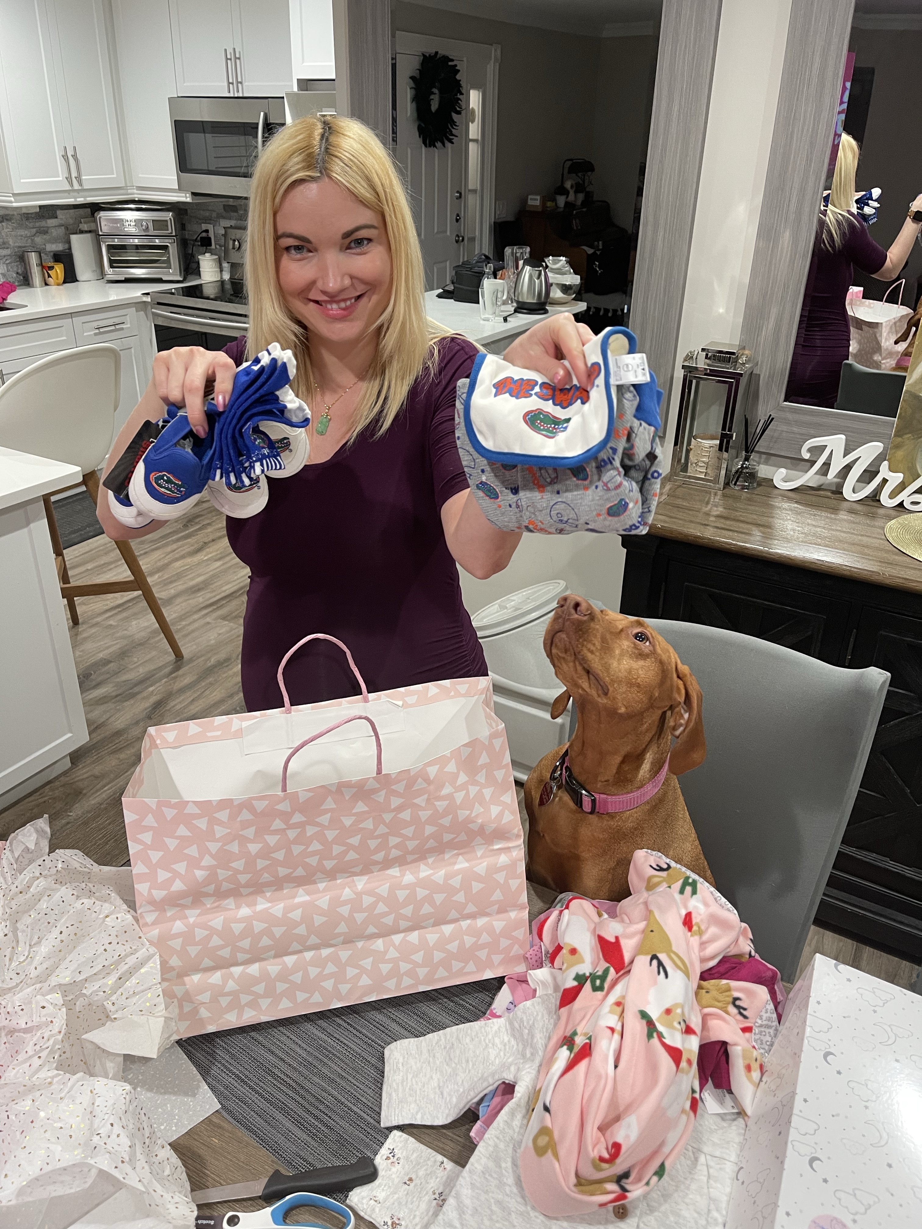 They sent a bunch of presents to our home. I don’t wear diapers (yet) and they don’t fit me, so they must be for you.